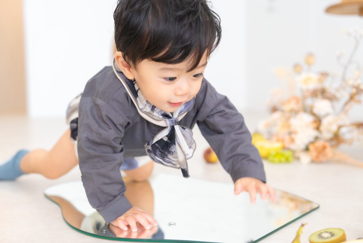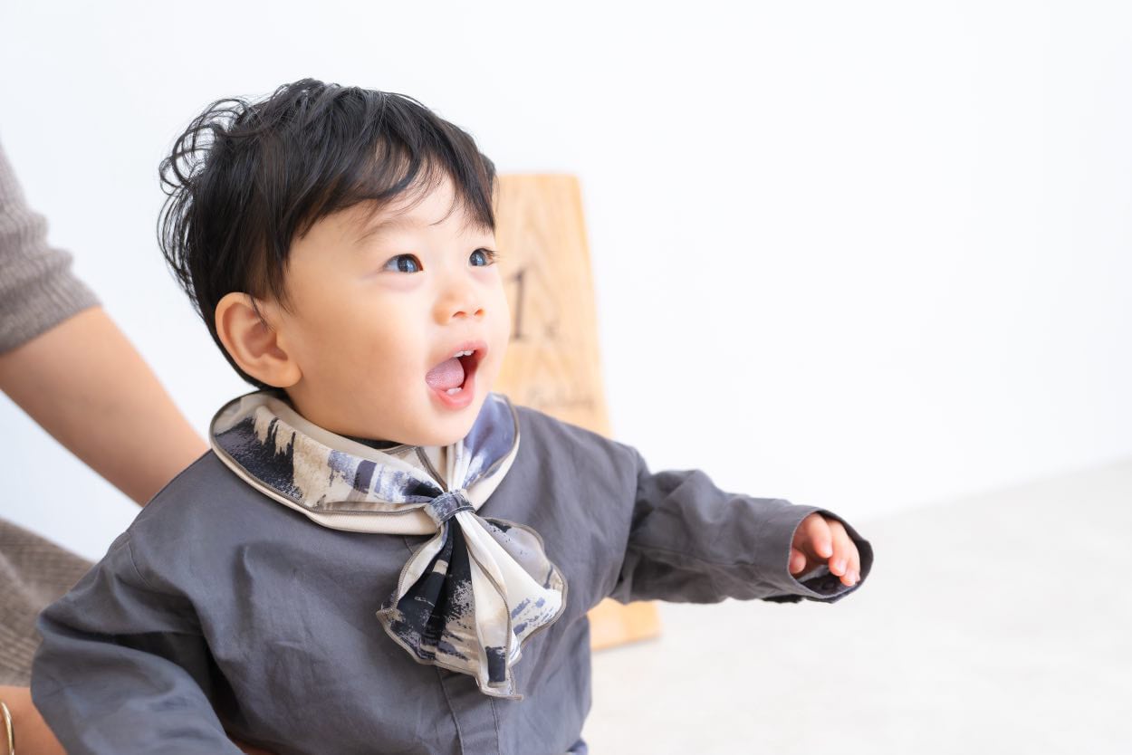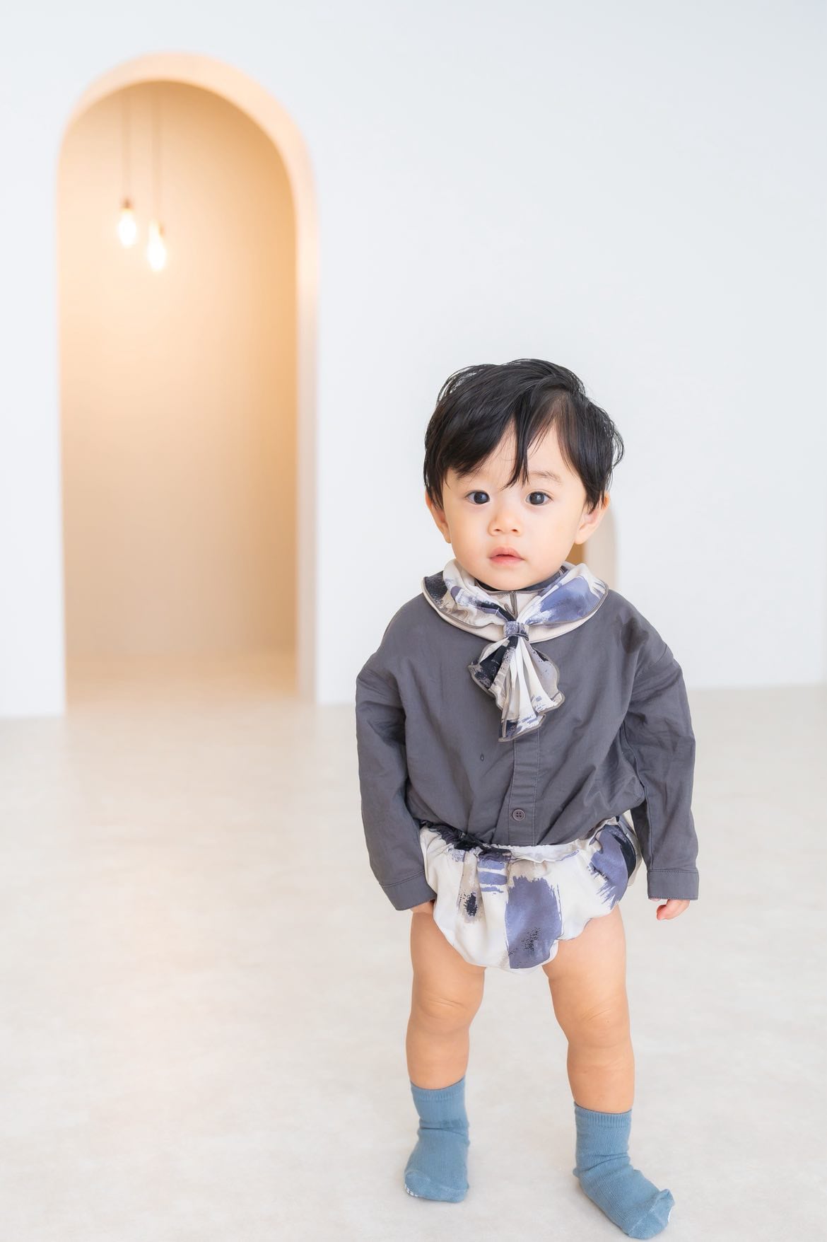 アートのような柄がふんわりと広がり、赤ちゃんらしい可愛さの中に少し大人っぽい雰囲気もプラスされます。