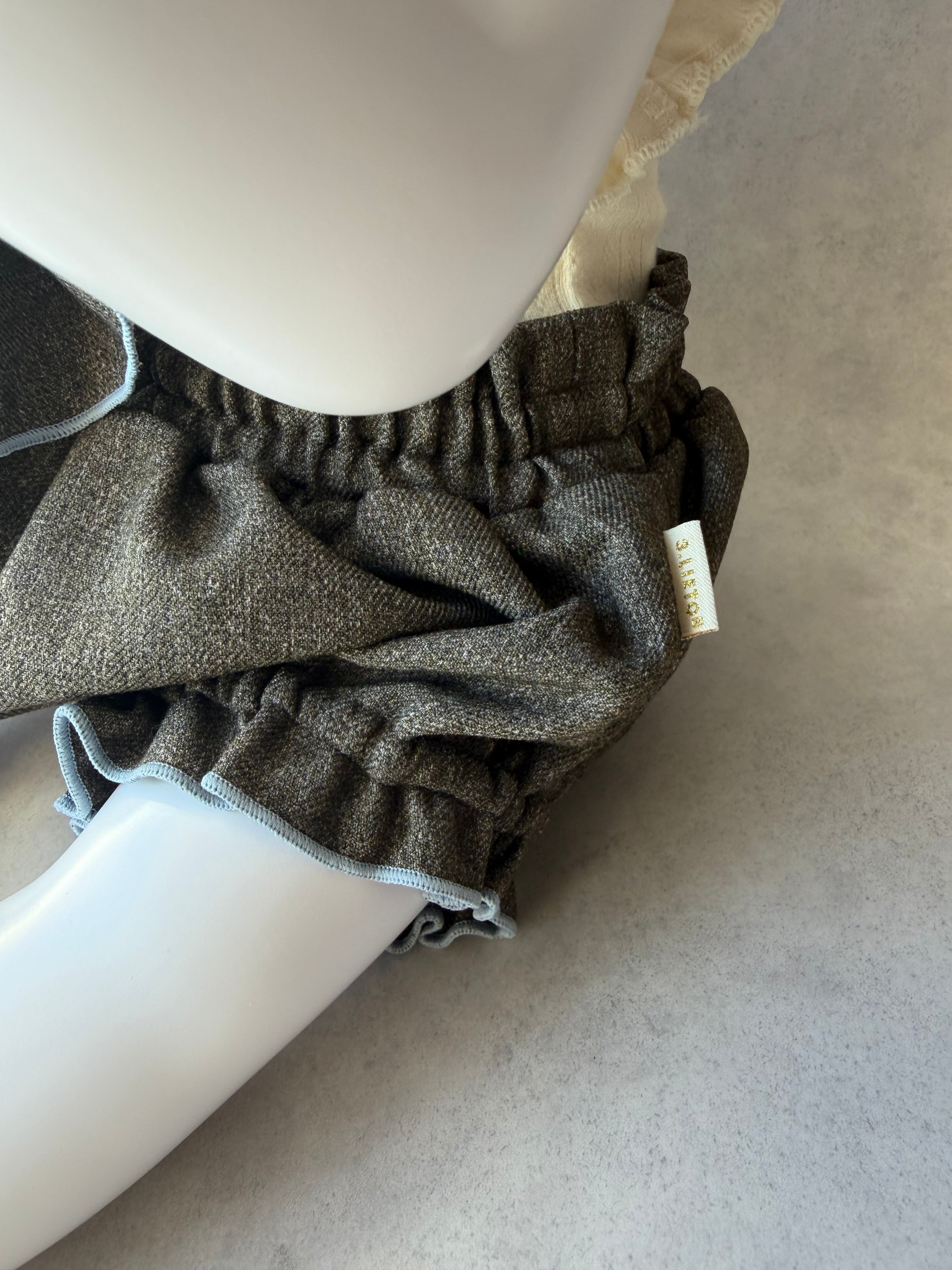 ・ウエストにたっぷりギャザーを入れて、まあるくふんわり立ち上がるシルエット